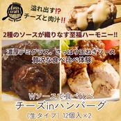 内容量:チーズinハンバーグ 24個(約55g×12個 × 2パック)/デミグラスソース(250g)×1/玉ねぎソース(150g)×1