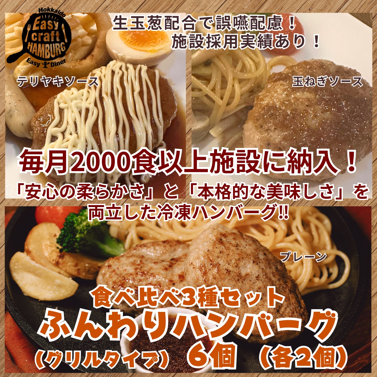 【冷凍お試しセット】北海道産 施設採用実績 ふんわりハンバーグ 3種6個セット(湯煎15分・誤嚥配慮)